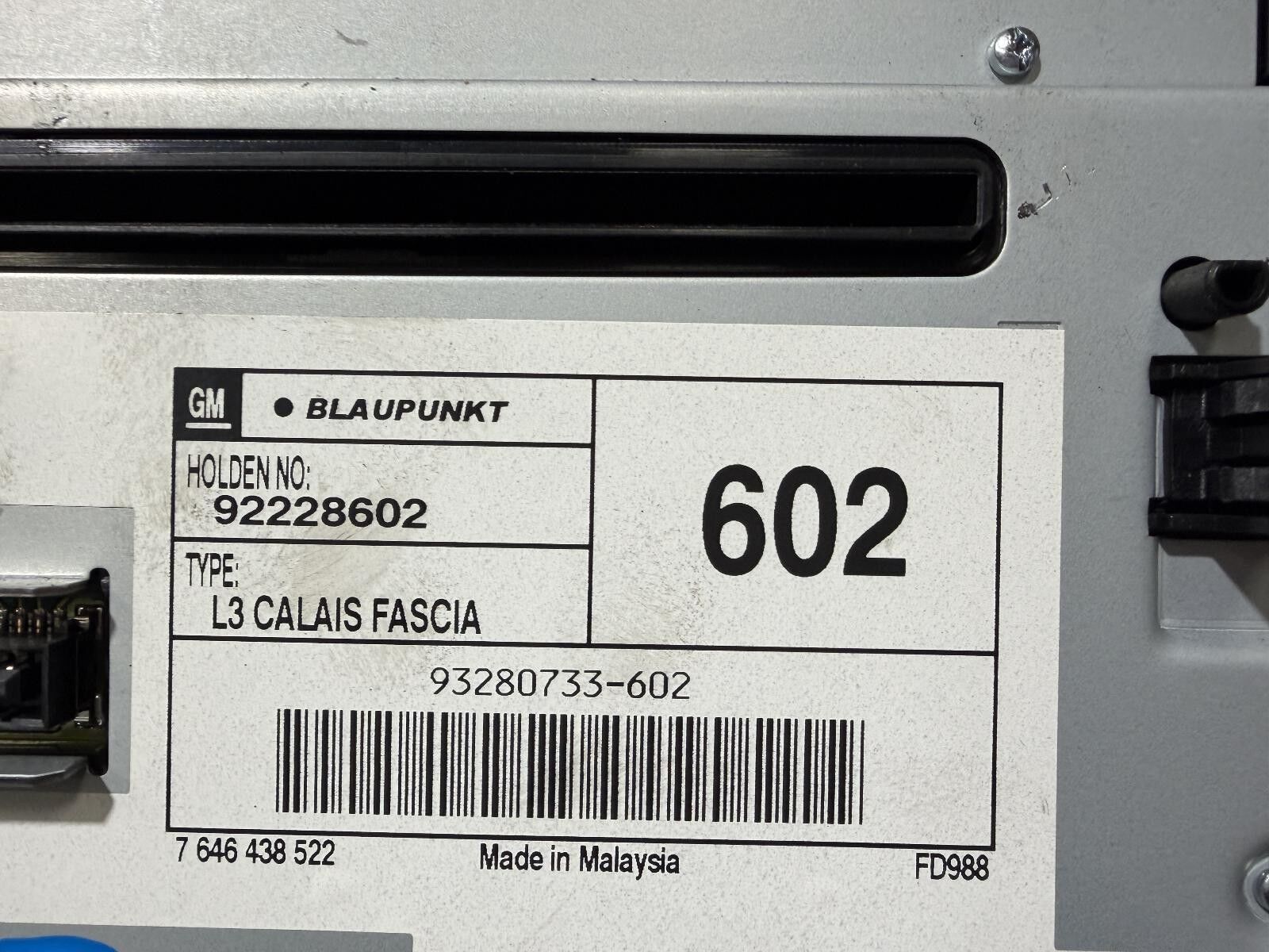 Part Comments: VE Series I - Display / Control Panel - 6-Disc Stacker, w/Sat Nav, Calais-V, Early Type. Second hand, good condition. 92228602