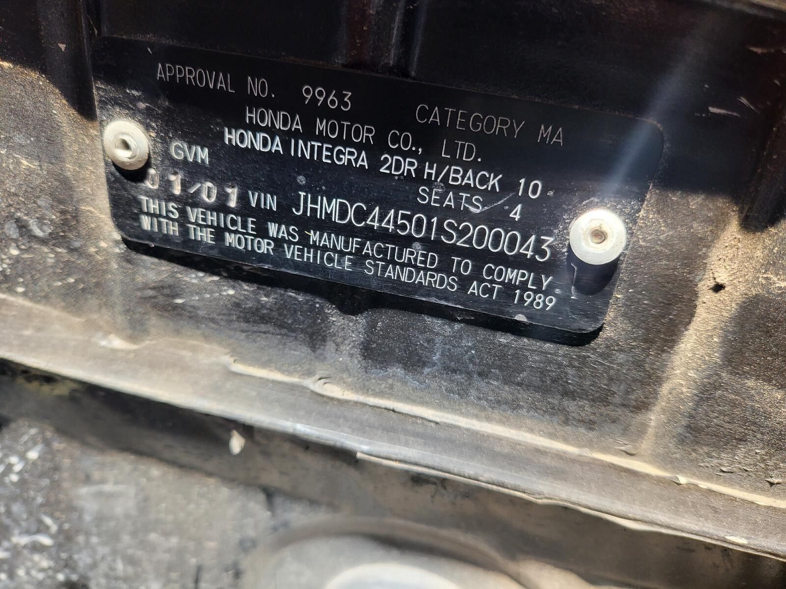 Honda Integra GSi Tailgate 10/1999-08/2001