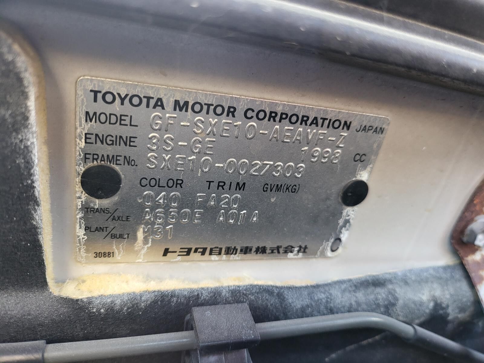 Part Comments: SXE10 - P325, Ignition Barrel With Column But Has No Key, Steering Column Only. Second hand in good condition