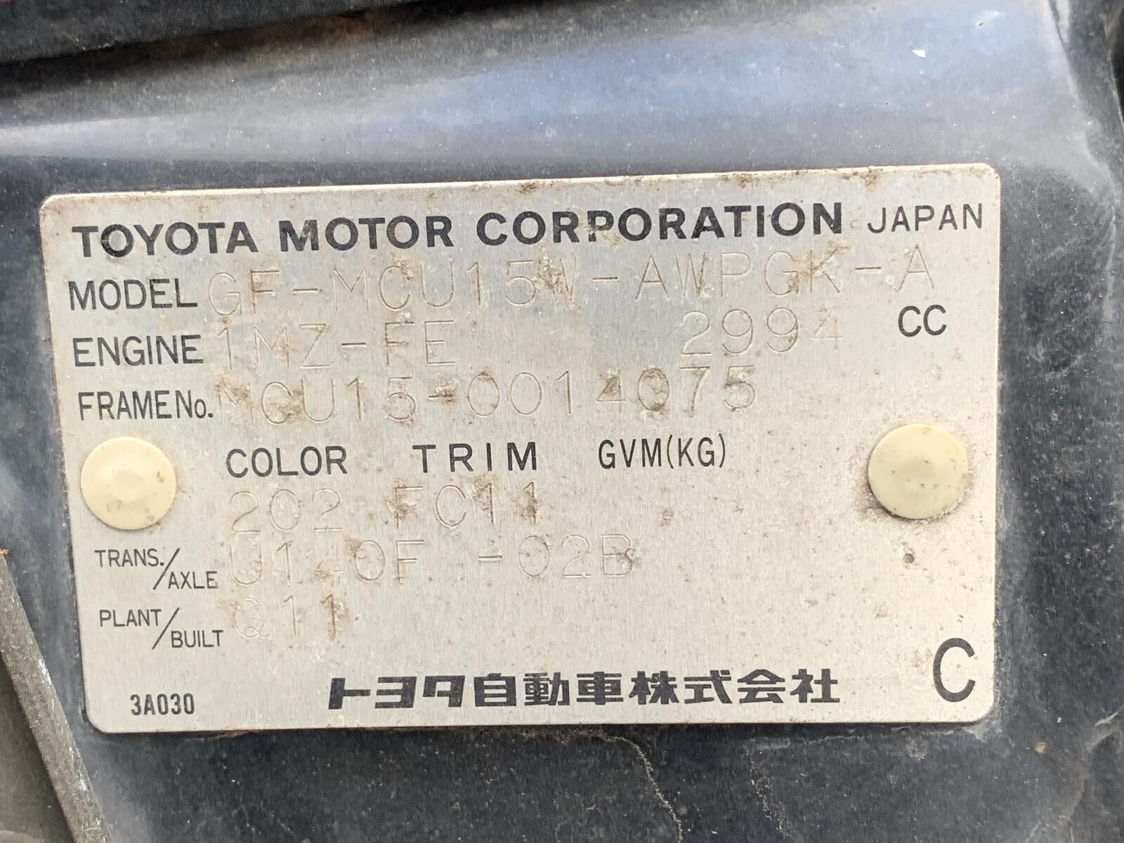 Part Comments: RX300 / MCU15 - Harrier Import. Has some scratches. Second hand in good condition.