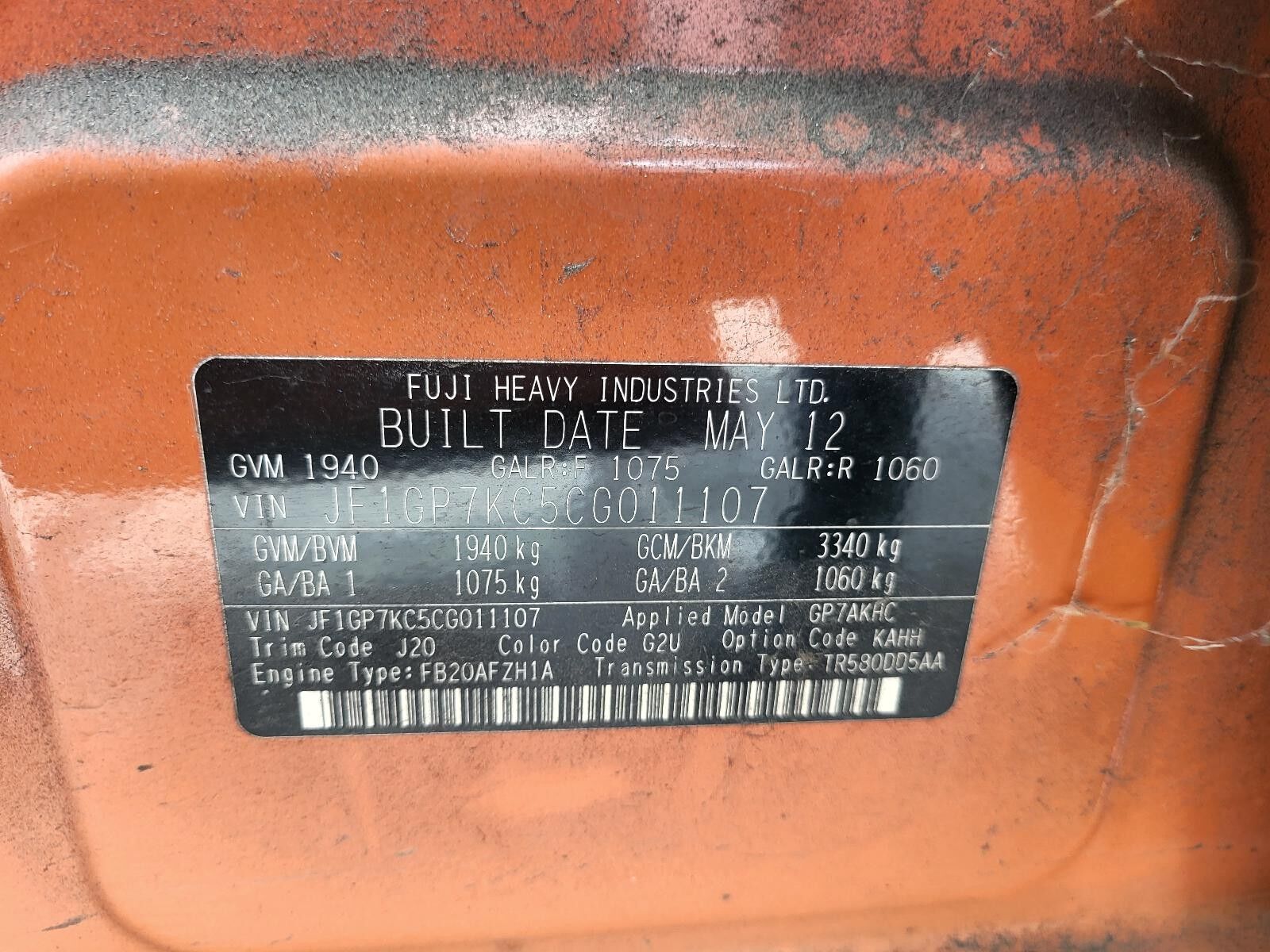 IMPREZA 2011 - 2017 G4, HATCH, TINTED, 12/11-08/17
