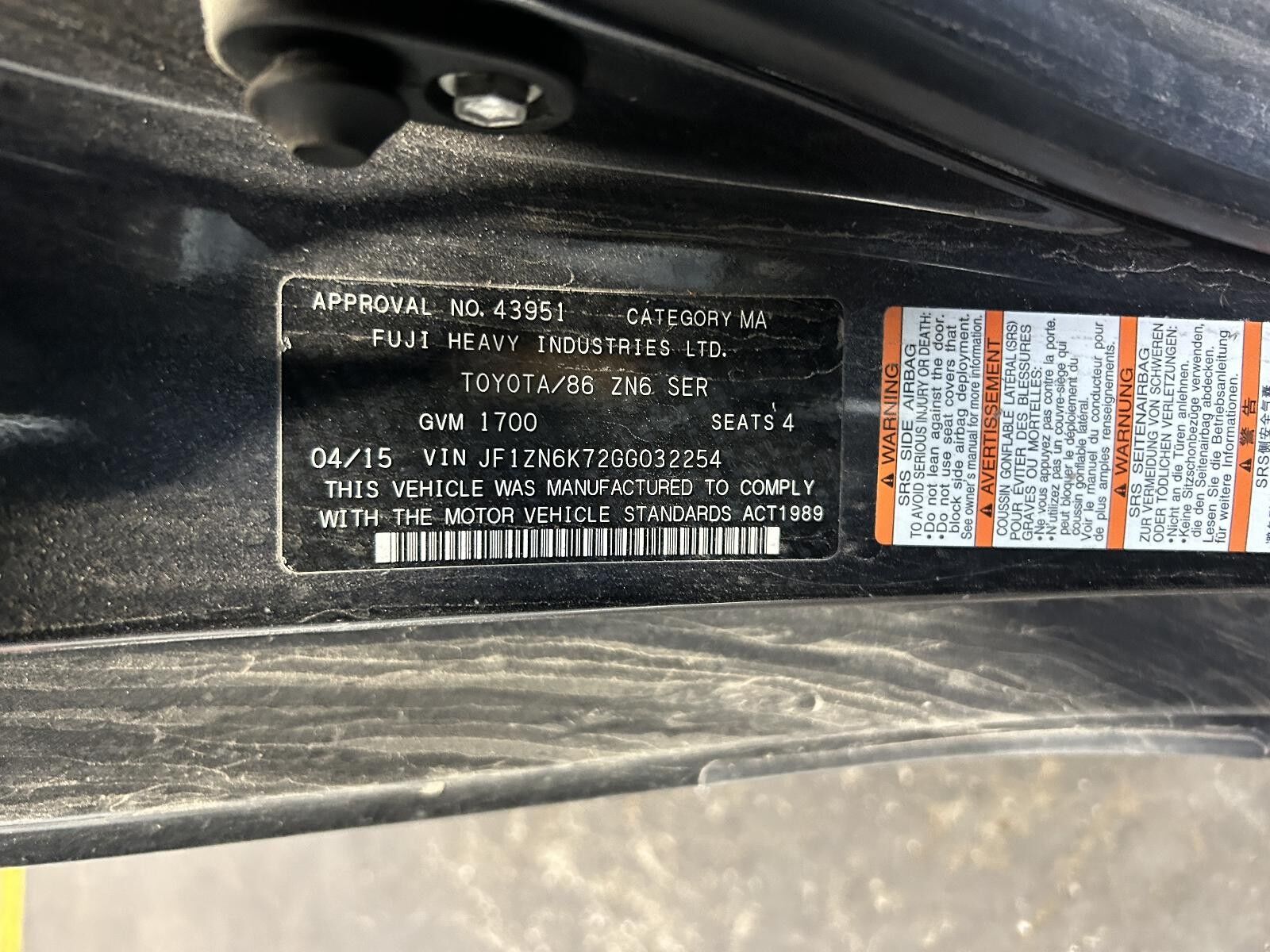 TOYOTA 86 MISC SWITCH/RELAY ZN6, 04/12-09/21 12 13 14 15 16 17 18 19 20 21