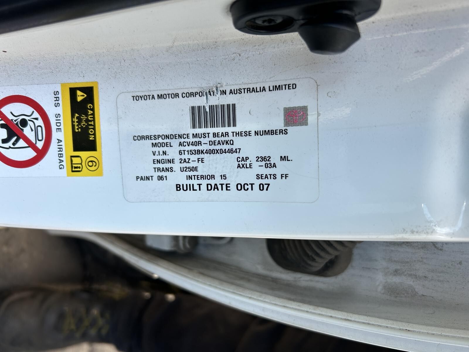Model: CAMRY 2007