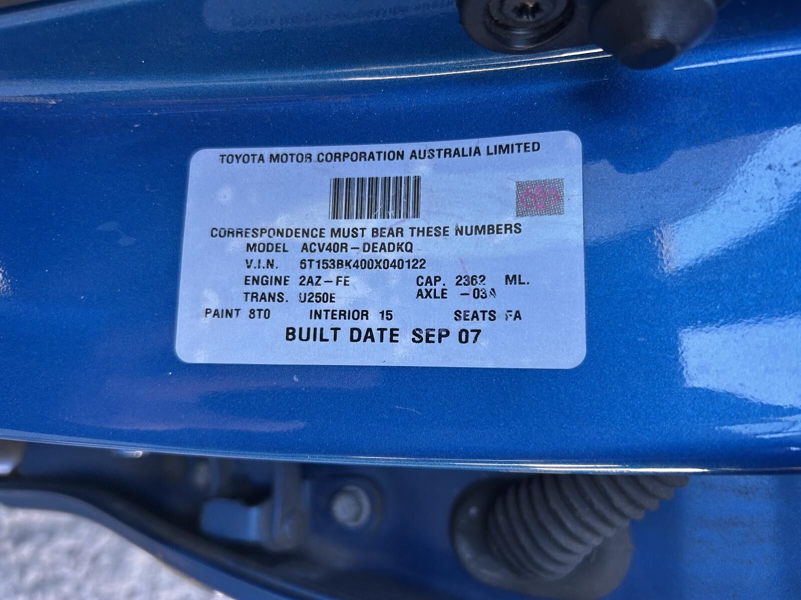 Model: CAMRY 2007