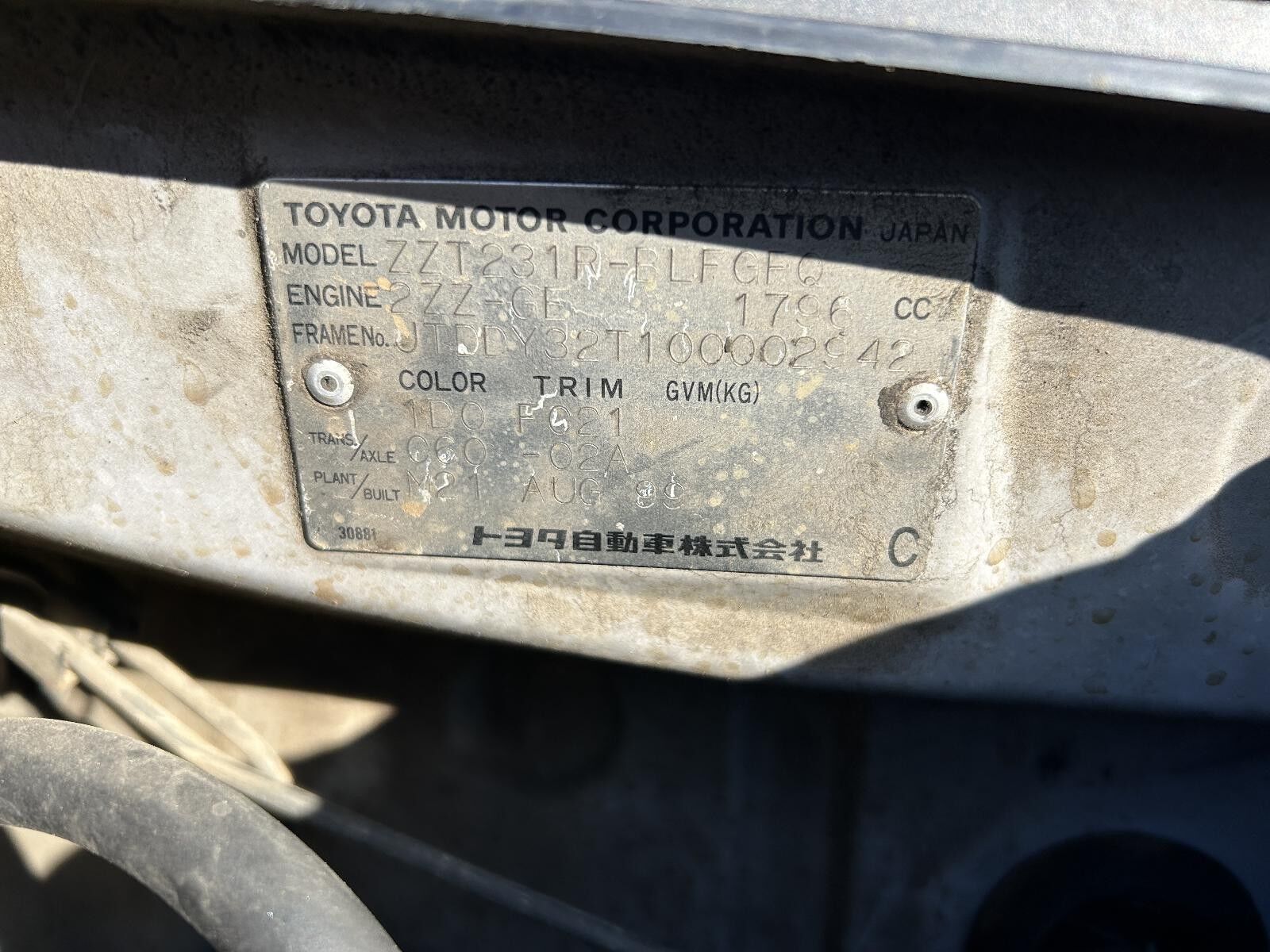 Part Comments: ZZT231 - 1.8L, 2ZZ-GE, Second hand in good condition