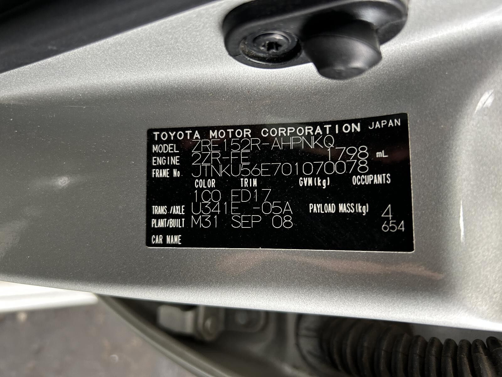 Part Comments: ZRE152 - Second hand in good condition.