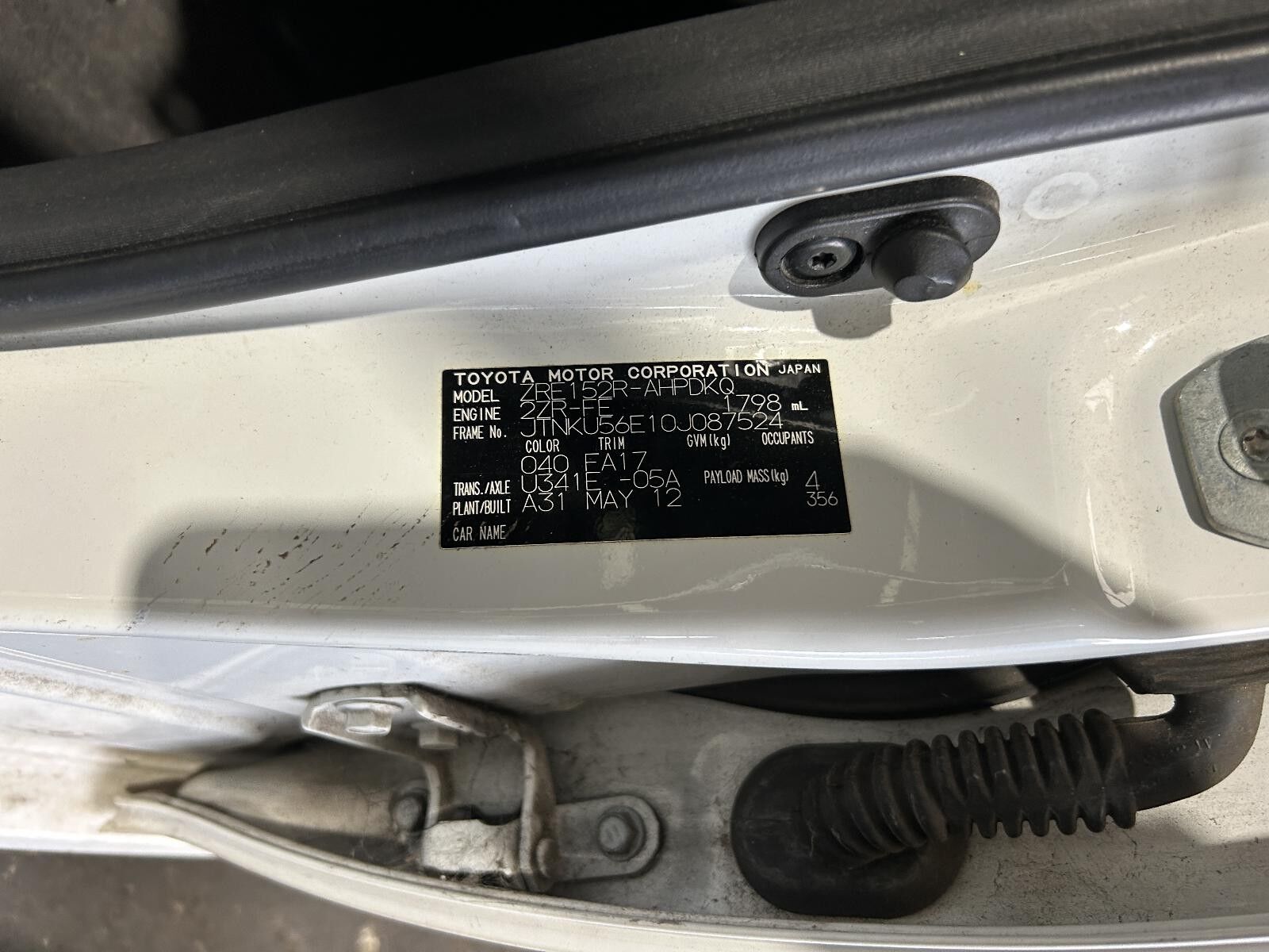 Part Comments: ZRE152 - Second hand in good condition.