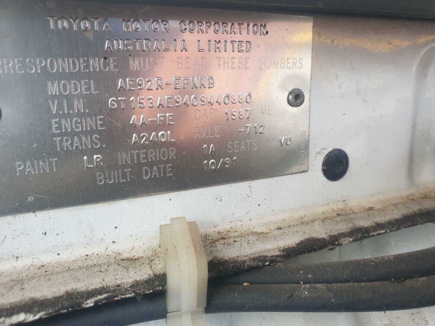 Toyota Corolla Left Front Door Shell AE92 06/1989-08/1994