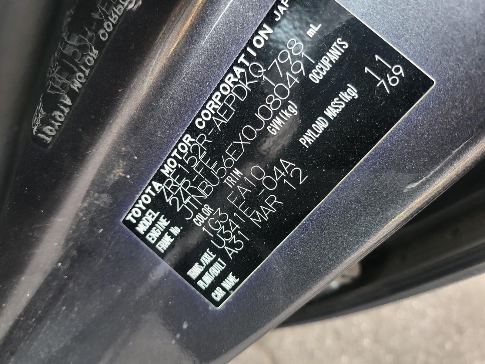 Model: COROLLA 2012
