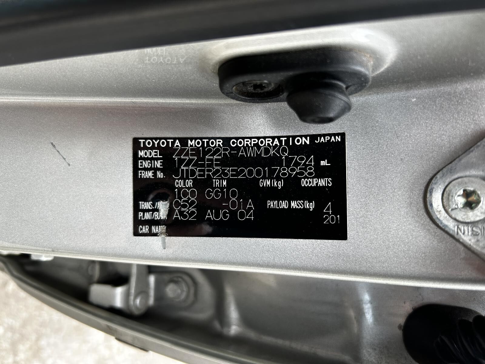 Model: COROLLA 2004