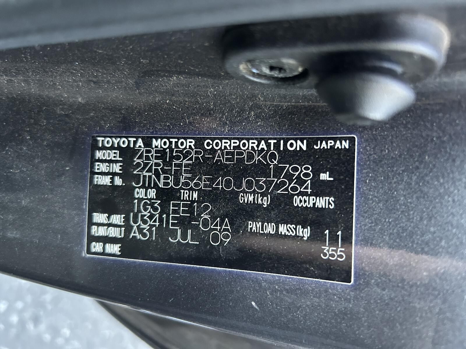 Part Comments: ZRE152 - 1.8 Petrol. Auto. Second hand in good condition.