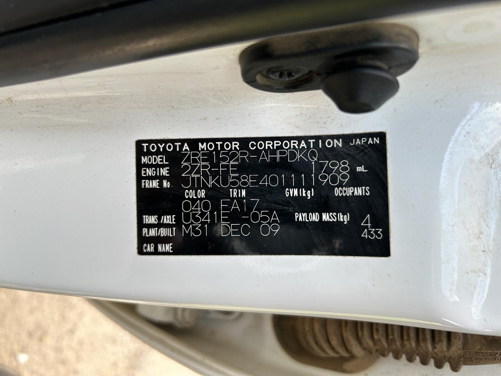 Part Comments: ZRE152 - Hatch, w/Flasher, Folding Type, Late Type. Paint: 040. Second hand, good condition.