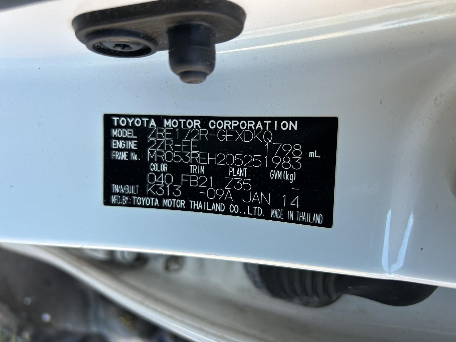 Part Comments: ZRE172 - Sedan. Paint: 040. Door Shell only. Second hand, has some small dents/scratches.