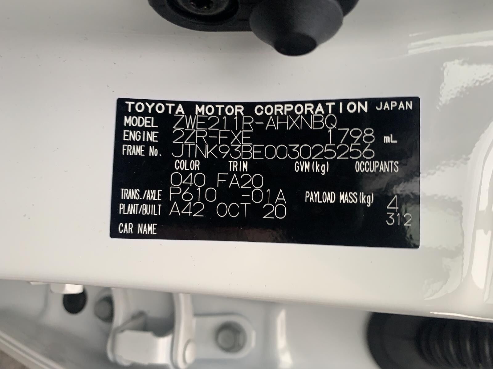 Model: COROLLA 2020