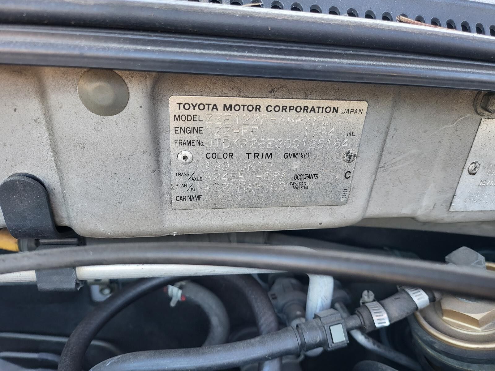 Model: COROLLA 2003