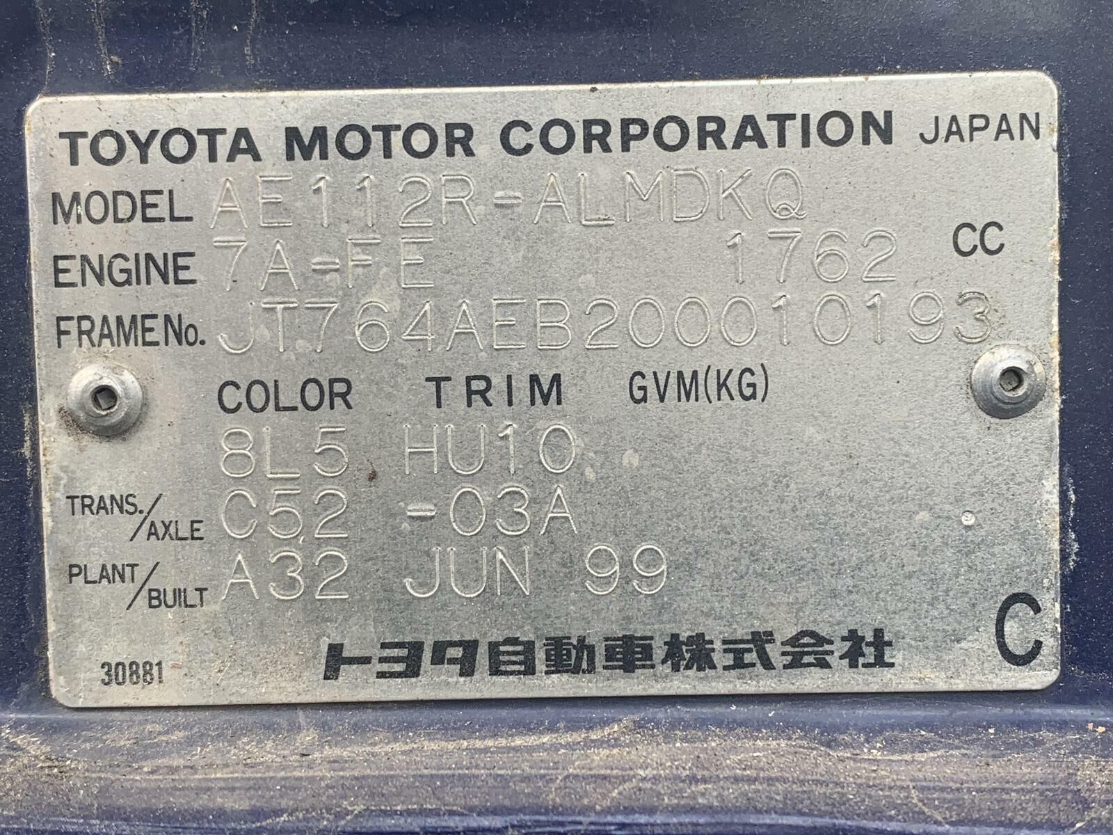 Toyota Corolla Starter Motor AE112 101/1998-11/2001