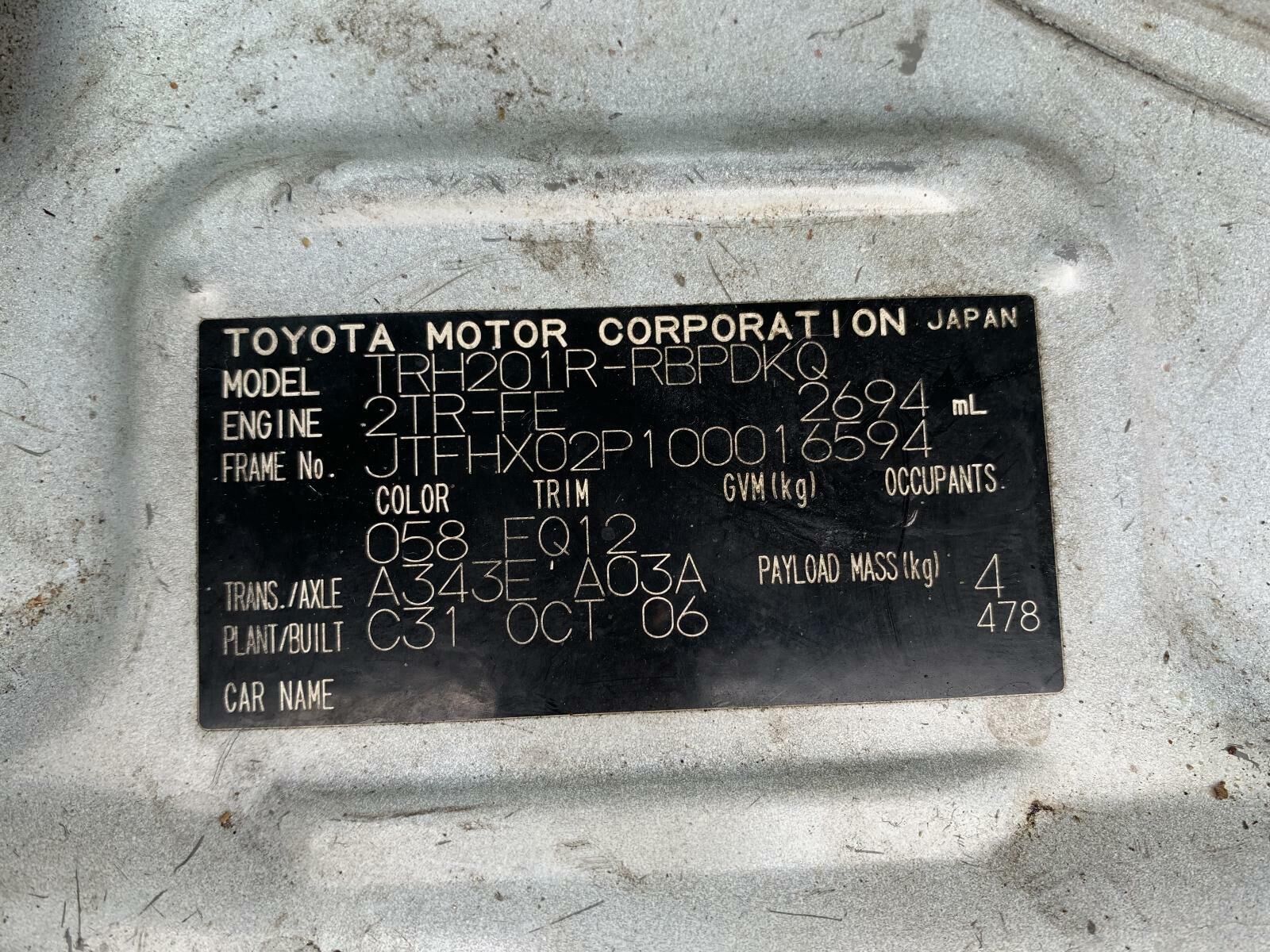 Toyota HIACE Front Seat TRH201 Right Front LWB/SWB 03/05-01/14