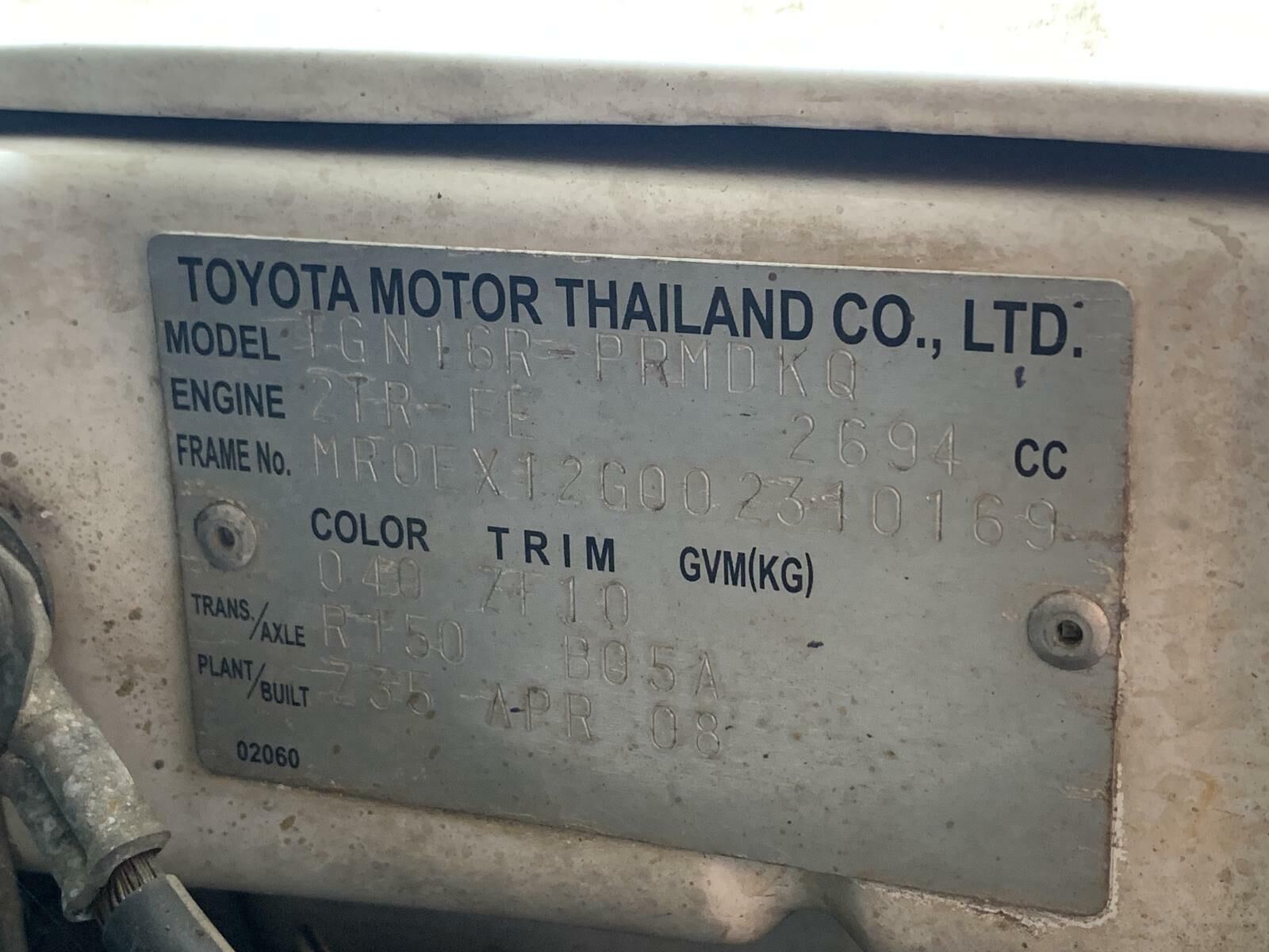 Toyota Hilux 2WD Manual Gearbox R150 2.7 2TR-FE TGN16 03/05-08/15