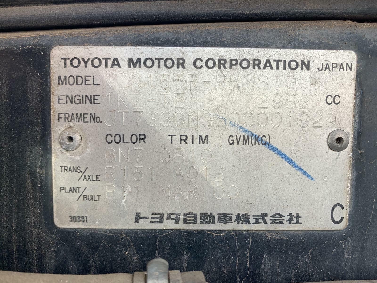 Toyota HILUX Right Rear Window Reg/Motor KZN165 09/97-03/05 Power