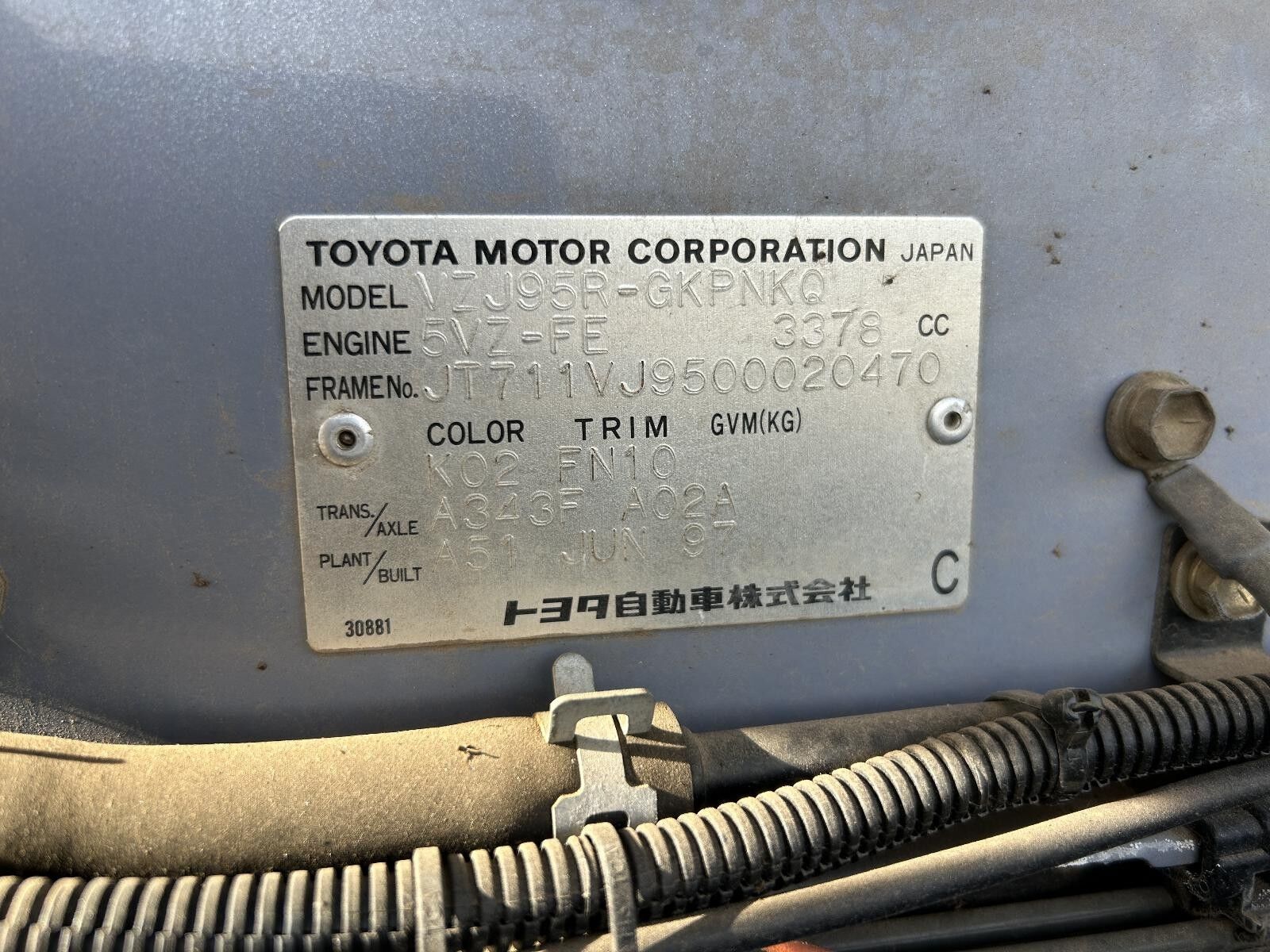 Part Comments: VZJ95 - Paint: K02. Second hand, has some small markws/scratches.
