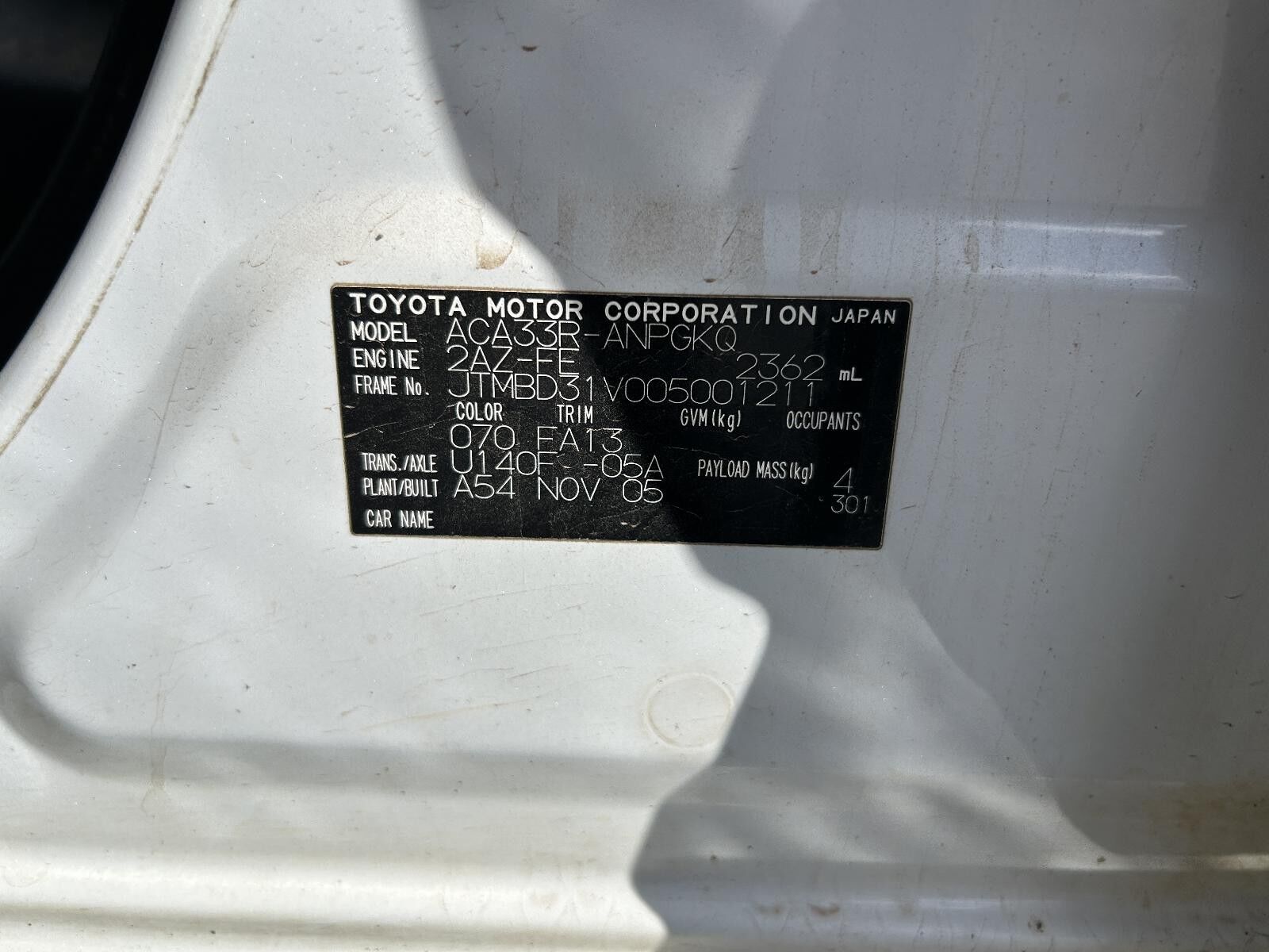 Engine Code: 2AZ-FE