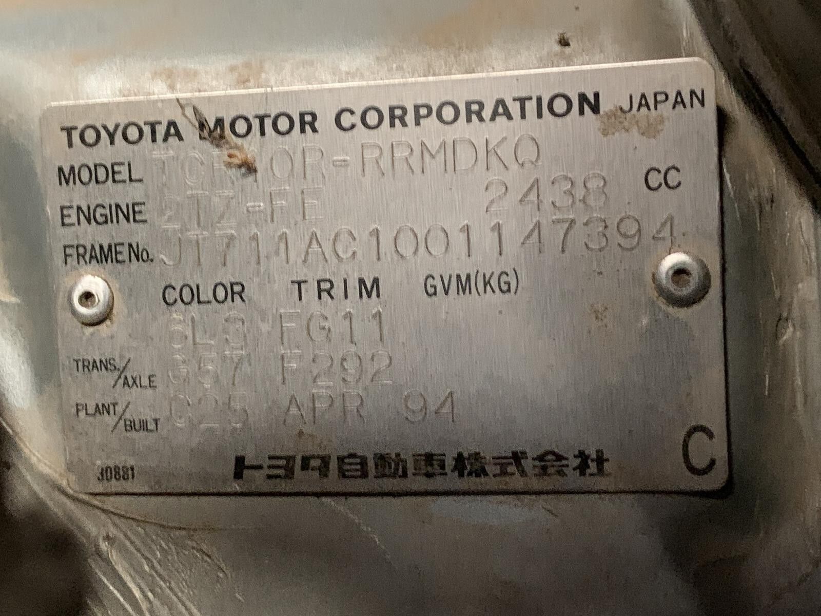 Part Comments: TCR10 - Manual. 401156 KMS. Second hand, good condition. 89200-28570