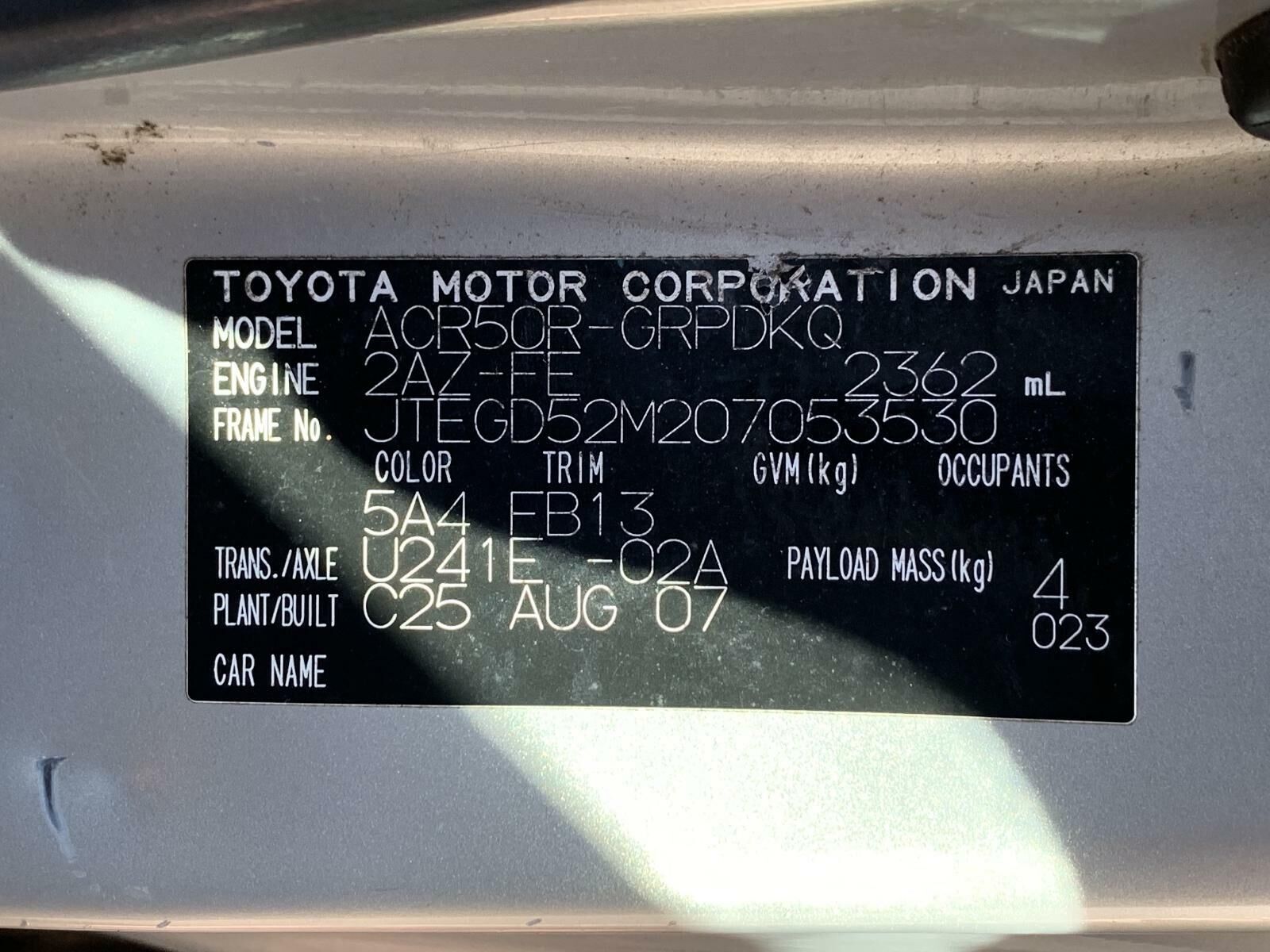 Toyota Tarago Sun Visors ACR50 03/2006-06/2020
