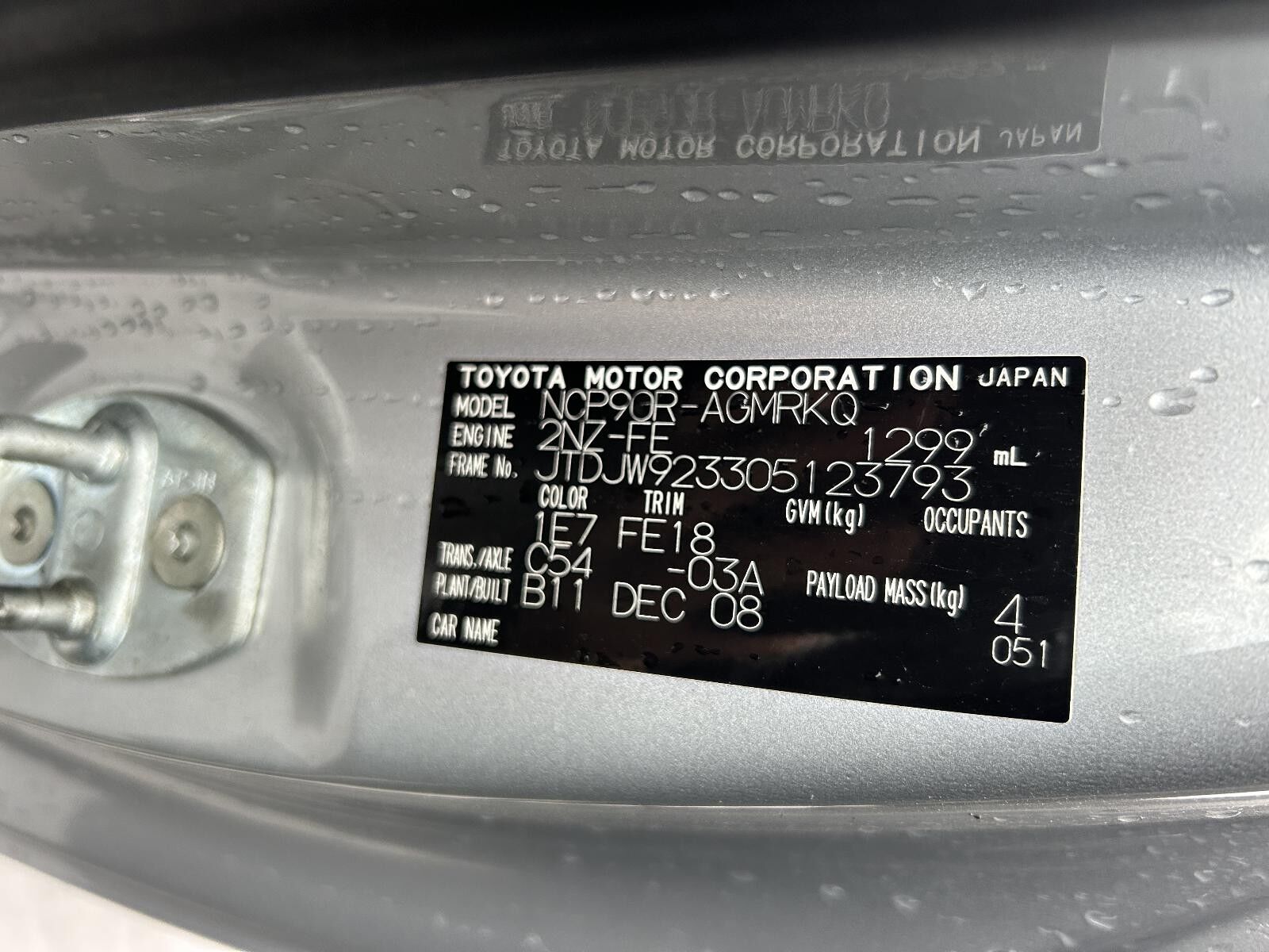 Part Comments: NCP90 - Hatch. Has some scratches. Second hand in good condition.
