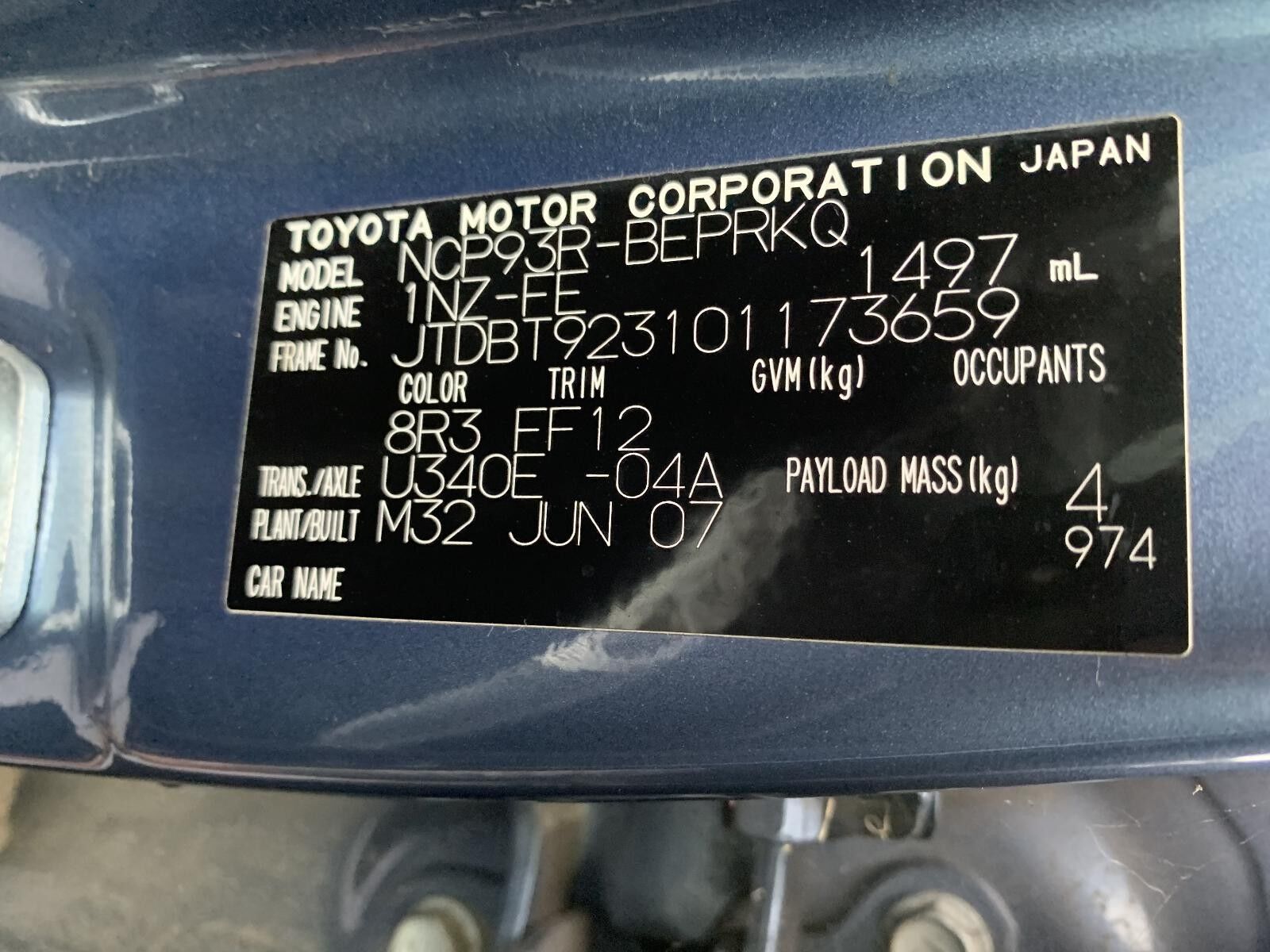 Part Comments: NCP93 - Sedan. Second hand, good condition.